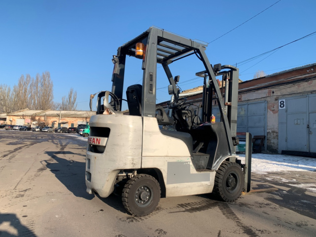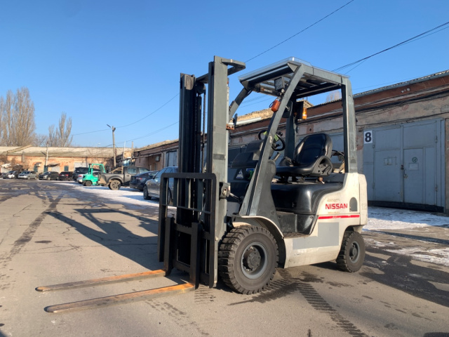 Газ-бензиновий навантажувач Nissan, 2012 року.Модель: P1F1A15D. Номiнальна вантажопідйомність 1.5 тонни. Максимальна висота підйому вантажу 3 метри. Щогла двохсекційна (duplex) яка не втрачає вантажопідйомності при висоті підйому. Двигун газ-бензиновий, з заводським газовим обладнанням, завдяки чому автонавантажувач у теплу пору року можє запускатись вiдразу на газу, без прогріву системи на бензині. Коробка перемикання передач надiйна i найпоширенiша на данний час - гiдромеханiка (автоматична із гідротрансформатором). Обладнаний сучасним двигуном, економічним інжекторним Nissan GK21. 4-циліндровий, робочим об'ємом 2.1 літра і потужністю 48 к. с. який славиться своєю надійністю і невибагливістю і без змін встановлюється на автонавантажувачах по сьогоднішній день і головне ремонтопридатний. Колеса 10 діаметра на ведучiй осі, що покращує прохідність автонавантажувача і збільшує його кліренс.
